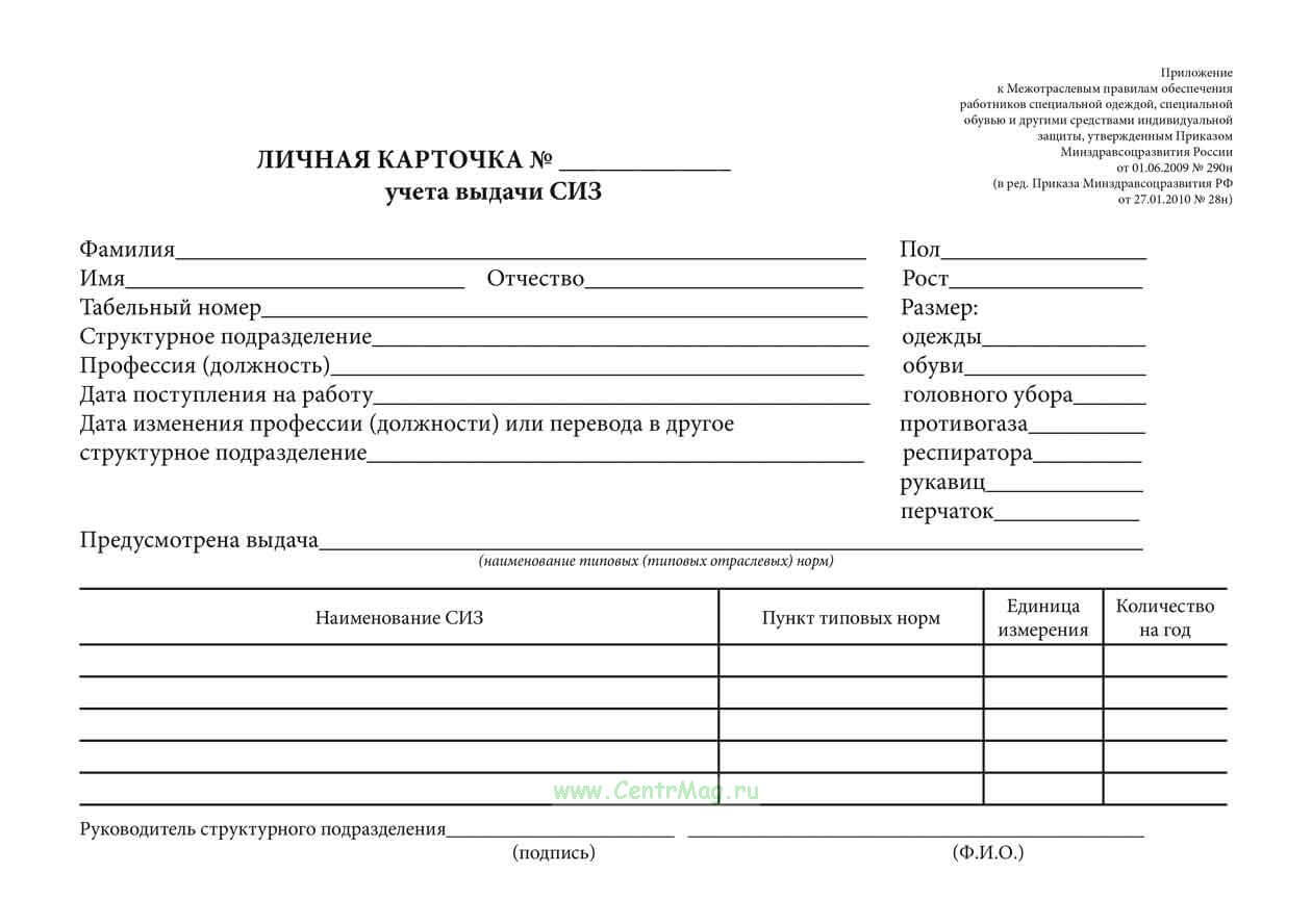 Так как для каждого элемента спецформы нормы по времени ношения регулируются отдельно, рекомендуется отмечать все выданные работникам позиции на карточках учета средств индивидуальной защиты.
